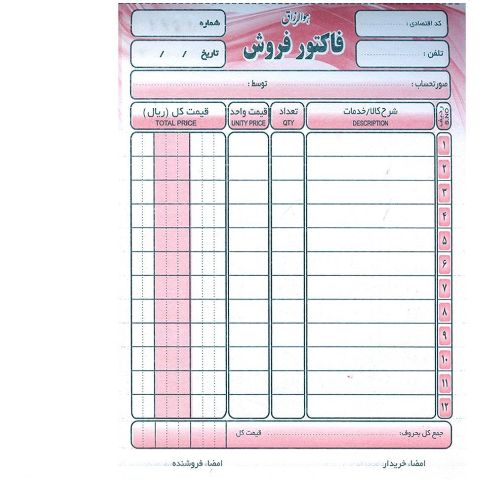 • طراحی رسمی، خوانا و مناسب برای ثبت فاکتورهای مالیاتی و غیرمالیاتی